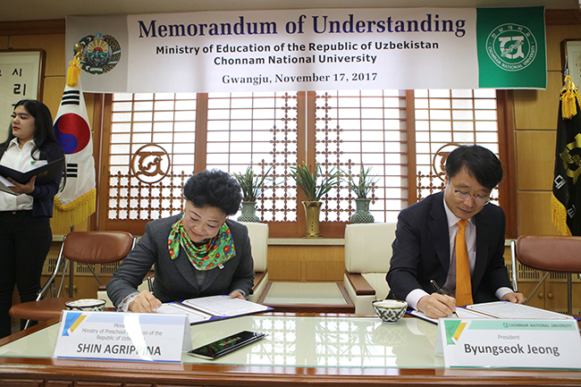 김명군 대표는 11월 22일(수) 오후 전남대학교를 방문, 정병석 총장에게 대학발전과 후학양성을 위해 써달라며 발전기금 2,000만원을 전달했다.