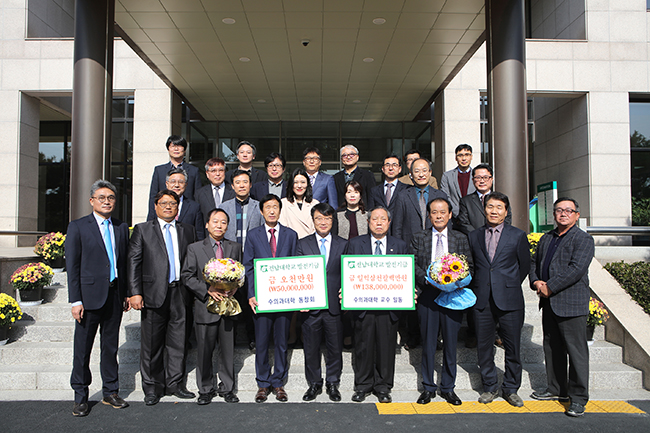 전남대학교 수의과대학 교수와 동문들이 모교에 대학발전기금을 기부했다.
