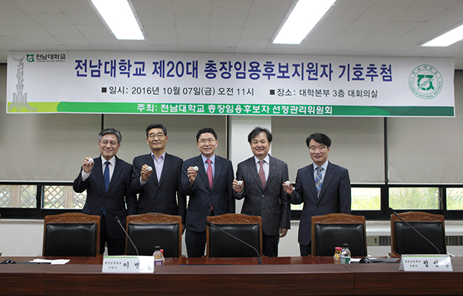 전남대학교 총장임용후보자선정관리위원회(위원장 김영철)는 10월 6일(목) 오후 5시 제20대 총장임용후보지원자 등록을 마감한 결과 총 5명이 등록을 마쳤다고 7일 밝혔다.