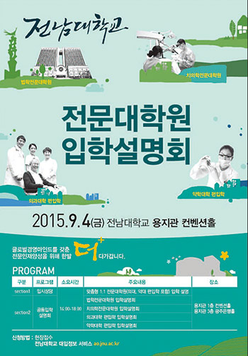 오는 15일까지 인터넷(www.jnu.ac.kr)으로 접수하며, 모집 인원은 전체(4,224명) 모집정원의 60%인 2,517명이다. 학생부교과전형으로 2,015명, 학생부종합전형으로 502명을 선발한다.